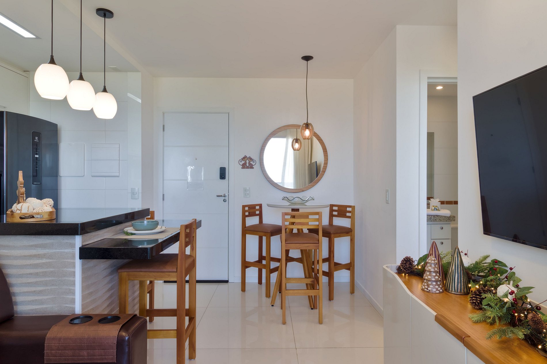 O check-in é realizado presencialmente por um anfitrião NOMADS — apresentação completa da unidade, registro no condomínio e orientação sobre o apartamento. A partir da chegada, o apartamento é inteiramente seu, com acesso independente e suporte disponível por mensagem ou presencialmente durante toda a estadia, com retorno no mesmo dia.