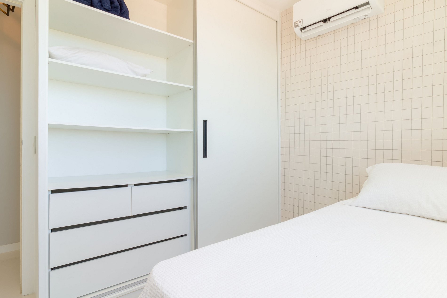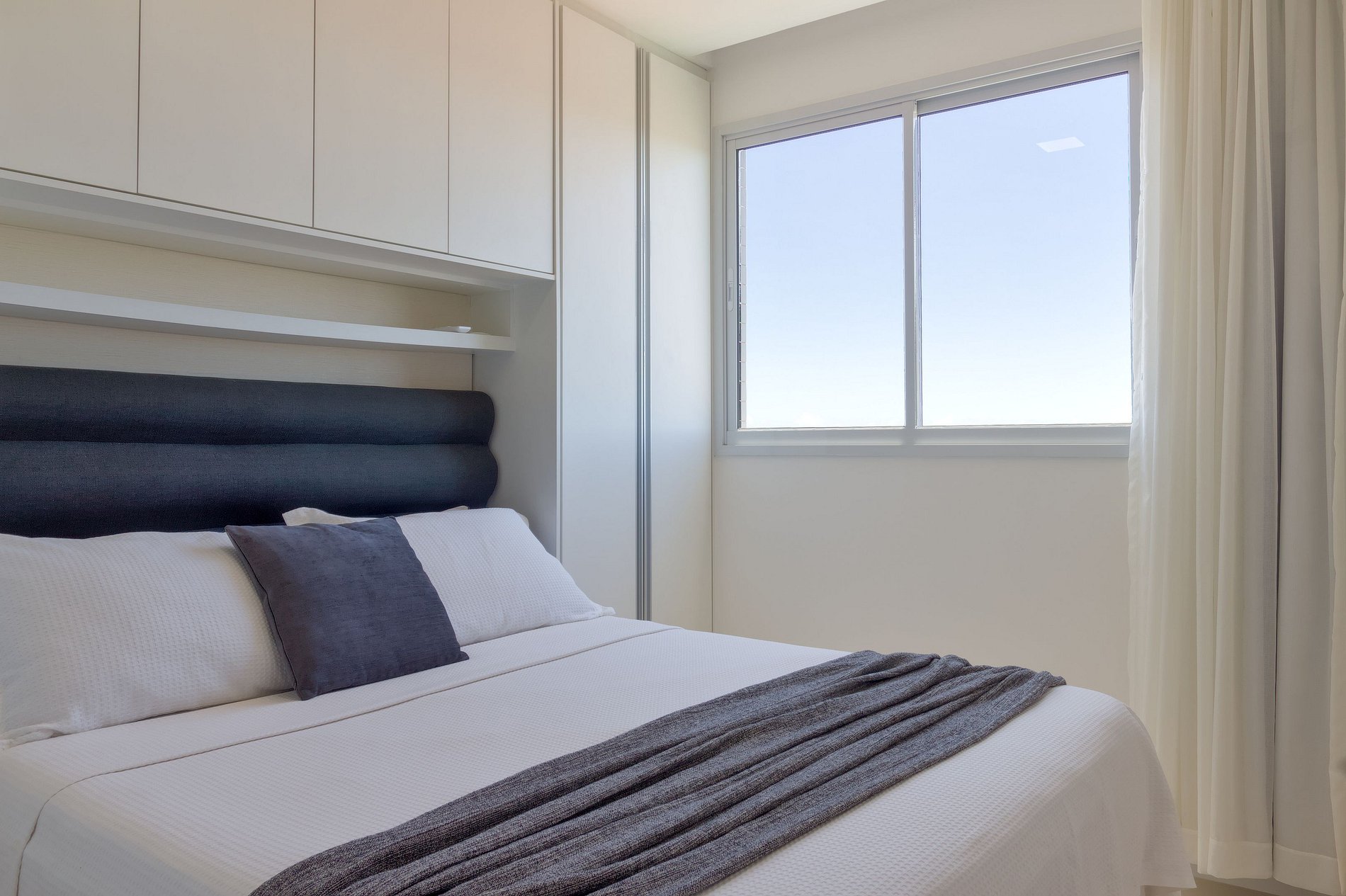 As unidades têm 58m², dois quartos, dois banheiros, cozinha equipada, lavanderia integrada, ar-condicionado e Wi-fi dedicado — estruturadas para quem precisa de mais do que um quarto de hotel. Cada unidade é gerenciada pela NOMADS Hospedagens com check-in presencial, orientação completa e suporte disponível durante toda a estadia.